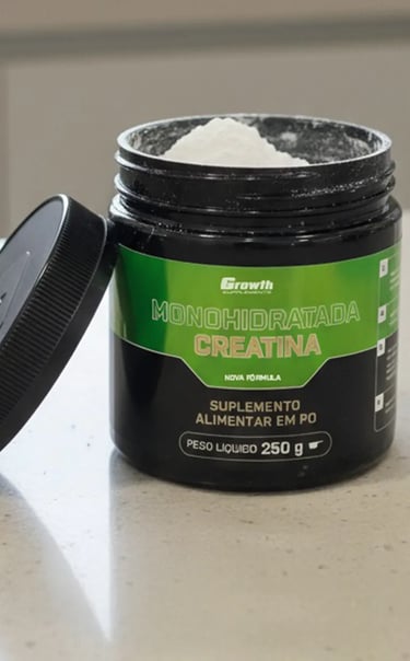 A creatina é um suplemento amplamente pesquisado na nutrição esportiva. É conhecida por seu papel potencial em apoiar a capacidade de gerar força, o que pode favorecer o desenvolvimento muscular e o rendimento em atividades físicas.